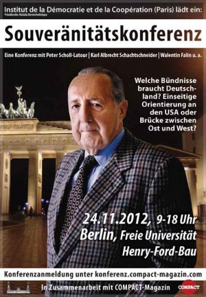 Вступительная речь Юргена Эльзэссера к "Конференции по суверенитету Германии", которая состоялась 24 ноября 2012 в Берлине. Я хочу закончить свою речь лозунгом: "ДА ЗДРАВСТВУЕТ ДРУЖБА НАРОДОВ ЕВРОПЫ, ПРЕЖДЕ ВСЕГО МЕЖДУ ГЕРМАНИЕЙ, ФРАНЦИЕЙ И РОССИЕЙ! Сторонники суверенитета всех стран соединяйтесь !"