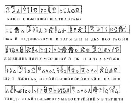 Рис. 1. Фонетические значения иероглифов ФД (на основе репертуара знаков ФД в книге Г. Йенсена «Письмо», 1935).