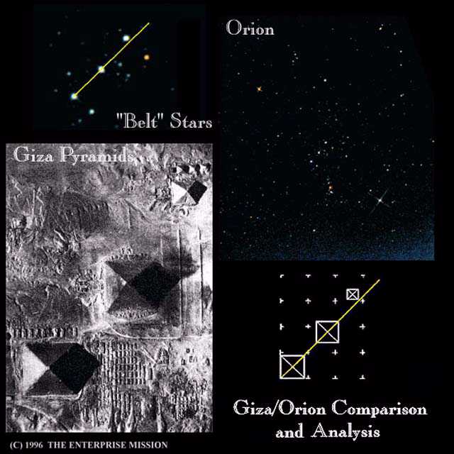 Греческая интерпретация Ориона, по-видимому, не сочетается с мифологией космической программы, и Хогленд копнул глубже. Изучая древние религии и мифы, он узнал, что Орион приобрёл особенную важность в верованиях Древнего Египта. Созвездие Ориона, по мнению знатоков египетской мифологии, было небесным образом центральной фигуры египетского пантеона богов, богом «воскресения», которого древние египтяне чтили как «Осириса». Несомненно, история Ориона/Осириса, его смерть от руки злого брата Сета/Тельца, его волшебное воскресение своей сестрой и женой Исидой, представленной звездой Сириус и иногда ассоциирующейся с Луной, и его месть рукой своего сына и наследника Гора/Льва является самым древним и священным из оригинальных египетских мифов. Не будет преувеличением назвать Ориона/Осириса «королём» египетского пантеона богов.