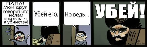 1. Ислам - сцукоопасный крокодил, представители которого регулярно готовы отчубучить неожиданную, а точнее - ожидаемую мерзость. Такова се ля ви. Трава зелёная, небо синее, Волга впадает в Каспийское море. Ислам, конечно, "религия мира", ага. Но тем, кто в этом усомниться, тому шахиды готовы мигом головы отрезать.