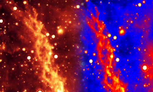 Для примера из совсем другой области, в мартовском выпуске журнала Nature за 2006 год группа астрономов из американских университетов UCLA и Корнелл (Mark Morris, Keven Uchida, Tuan Do) сообщила об открытии невиданной прежде туманности в форме двойной спирали ДНК. Структура столь необычного для космоса вида была обнаружена с помощью особо чувствительного орбитального телескопа Spitzer и расположена вблизи центра нашей галактики Млечный путь. Та часть туманности, которую можно рассмотреть на инфракрасном снимке, растянулась в пространстве примерно на 80 световых лет. Подавляющее большинство туманностей, наблюдаемых астрономами, это либо состоящие из звезд галактики известной формы, либо бесформенные скопления космической пыли и газа. Открытая же ныне туманность демонстрирует в высшей степени регулярную форму, но при этом не похожую на все остальные.[3]