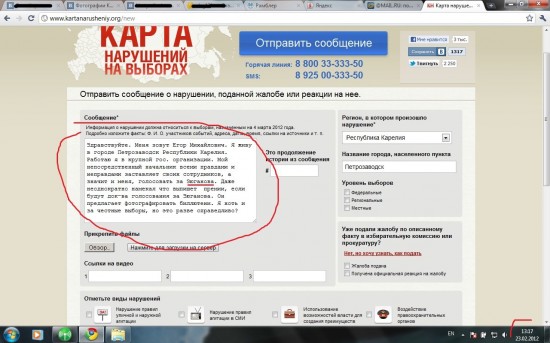 А вот самое первое отправленное читателем сообщение — прошло за милую душу, как и все остальные выдуманные нарушения якобы в пользу Путина.